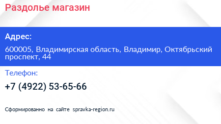 Раздолье, магазин по адресу 600005, Владимирская область, Владимир, Октябрьский проспект, 44 в дальнейшем Организация, размещена в следующих категориях: