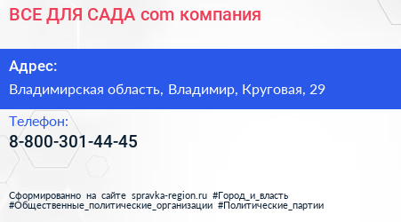 ВСЕ ДЛЯ САДА.com, компания по адресу Владимирская область, Владимир, Круговая, 29 в дальнейшем Организация, размещена в следующих категориях: