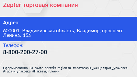 Zepter, торговая компания по адресу 600001, Владимирская область, Владимир, проспект Ленина, 15а в дальнейшем Организация, размещена в следующих категориях: