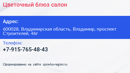 Цветочный блюз, салон по адресу 600028, Владимирская область, Владимир, проспект Строителей, 46г в дальнейшем Организация, размещена в следующих категориях: