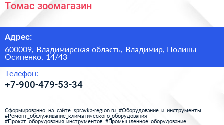 Томас, зоомагазин по адресу 600009, Владимирская область, Владимир, Полины Осипенко, 14/43 в дальнейшем Организация, размещена в следующих категориях: