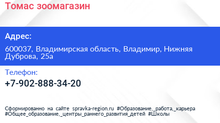 Томас, зоомагазин по адресу 600037, Владимирская область, Владимир, Нижняя Дуброва, 25а в дальнейшем Организация, размещена в следующих категориях: