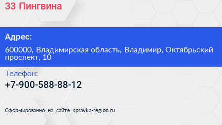 33 Пингвина по адресу 600000, Владимирская область, Владимир, Октябрьский проспект, 10 в дальнейшем Организация, размещена в следующих категориях: