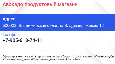 Авокадо, продуктовый магазин по адресу 600003, Владимирская область, Владимир, Новая, 12 в дальнейшем Организация, размещена в следующих категориях: