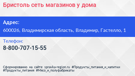 Бристоль, сеть магазинов у дома по адресу 600026, Владимирская область, Владимир, Гастелло, 1 в дальнейшем Организация, размещена в следующих категориях: