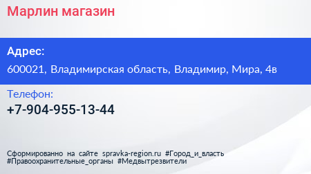 Марлин, магазин по адресу 600021, Владимирская область, Владимир, Мира, 4в в дальнейшем Организация, размещена в следующих категориях:
