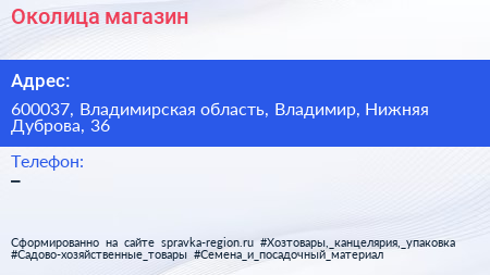 Околица, магазин по адресу 600037, Владимирская область, Владимир, Нижняя Дуброва, 36 в дальнейшем Организация, размещена в следующих категориях: