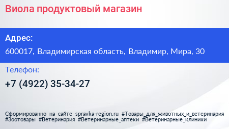 Виола, продуктовый магазин по адресу 600017, Владимирская область, Владимир, Мира, 30 в дальнейшем Организация, размещена в следующих категориях: