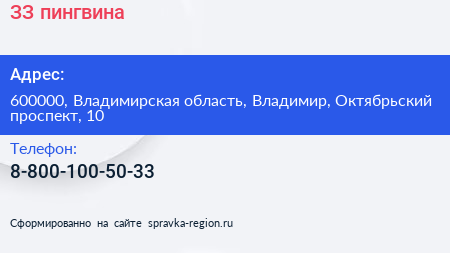 ЗЗ пингвина по адресу 600000, Владимирская область, Владимир, Октябрьский проспект, 10 в дальнейшем Организация, размещена в следующих категориях: