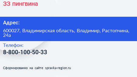 ЗЗ пингвина по адресу 600027, Владимирская область, Владимир, Растопчина, 24а в дальнейшем Организация, размещена в следующих категориях: