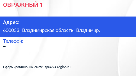 ОВРАЖНЫЙ-1 по адресу 600033, Владимирская область, Владимир, в дальнейшем Организация, размещена в следующих категориях: