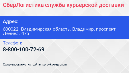 СберЛогистика, служба курьерской доставки по адресу 600022, Владимирская область, Владимир, проспект Ленина, 47а в дальнейшем Организация, размещена в следующих категориях: