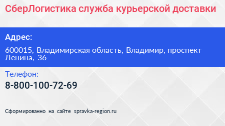СберЛогистика, служба курьерской доставки по адресу 600015, Владимирская область, Владимир, проспект Ленина, 36 в дальнейшем Организация, размещена в следующих категориях: