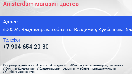 Amsterdam, магазин цветов по адресу 600026, Владимирская область, Владимир, Куйбышева, 5ж в дальнейшем Организация, размещена в следующих категориях: