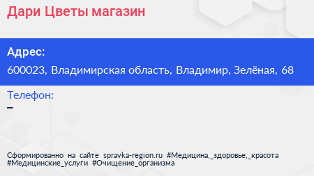 Дари Цветы!, магазин по адресу 600023, Владимирская область, Владимир, Зелёная, 68 в дальнейшем Организация, размещена в следующих категориях: