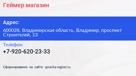 Гeймер, магазин по адресу 600028, Владимирская область, Владимир, проспект Строителей, 13 в дальнейшем Организация, размещена в следующих категориях: