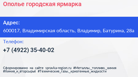 Ополье, городская ярмарка по адресу 600017, Владимирская область, Владимир, Батурина, 28а в дальнейшем Организация, размещена в следующих категориях: