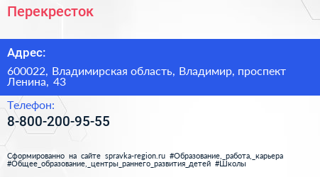 Перекресток по адресу 600022, Владимирская область, Владимир, проспект Ленина, 43 в дальнейшем Организация, размещена в следующих категориях: