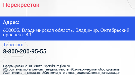 Перекресток по адресу 600005, Владимирская область, Владимир, Октябрьский проспект, 43 в дальнейшем Организация, размещена в следующих категориях:
