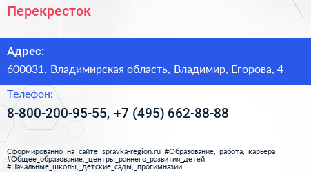 Перекресток по адресу 600031, Владимирская область, Владимир, Егорова, 4 в дальнейшем Организация, размещена в следующих категориях: