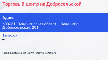 Торговый центр на Добросельской по адресу 600031, Владимирская область, Владимир, Добросельская, 201 в дальнейшем Организация, размещена в следующих категориях: