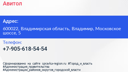 Авитол по адресу 600022, Владимирская область, Владимир, Московское шоссе, 5 в дальнейшем Организация, размещена в следующих категориях: