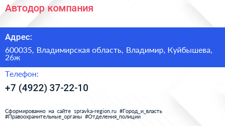 Автодор, компания по адресу 600035, Владимирская область, Владимир, Куйбышева, 26ж в дальнейшем Организация, размещена в следующих категориях: