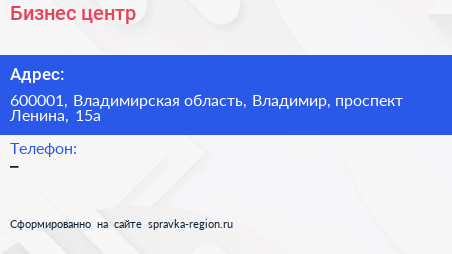 Бизнес-центр по адресу 600001, Владимирская область, Владимир, проспект Ленина, 15а в дальнейшем Организация, размещена в следующих категориях: