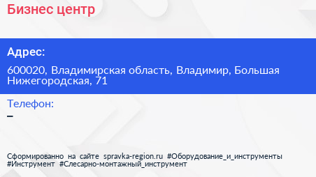 Бизнес-центр по адресу 600020, Владимирская область, Владимир, Большая Нижегородская, 71 в дальнейшем Организация, размещена в следующих категориях: