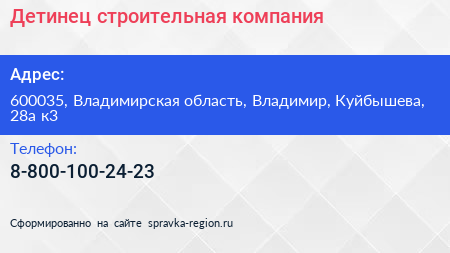 Детинец, строительная компания по адресу 600035, Владимирская область, Владимир, Куйбышева, 28а к3 в дальнейшем Организация, размещена в следующих категориях: