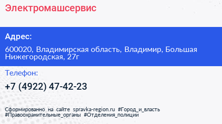Электромашсервис по адресу 600020, Владимирская область, Владимир, Большая Нижегородская, 27г в дальнейшем Организация, размещена в следующих категориях: