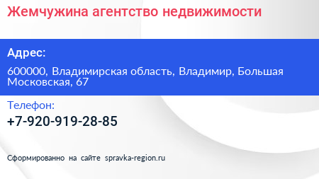 Жемчужина, агентство недвижимости по адресу 600000, Владимирская область, Владимир, Большая Московская, 67 в дальнейшем Организация, размещена в следующих категориях: