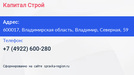 Капитал-Строй по адресу 600017, Владимирская область, Владимир, Северная, 59 в дальнейшем Организация, размещена в следующих категориях: