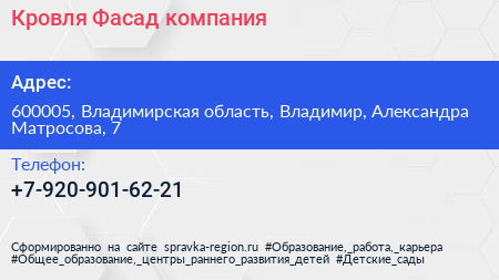 Кровля Фасад, компания по адресу 600005, Владимирская область, Владимир, Александра Матросова, 7 в дальнейшем Организация, размещена в следующих категориях: