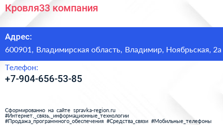 Кровля33, компания по адресу 600901, Владимирская область, Владимир, Ноябрьская, 2а в дальнейшем Организация, размещена в следующих категориях: