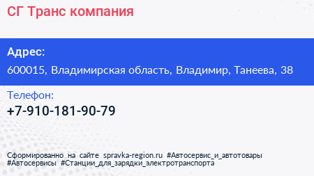 СГ-Транс, компания по адресу 600015, Владимирская область, Владимир, Танеева, 38 в дальнейшем Организация, размещена в следующих категориях: