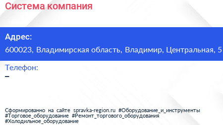 Система, компания по адресу 600023, Владимирская область, Владимир, Центральная, 5 в дальнейшем Организация, размещена в следующих категориях:
