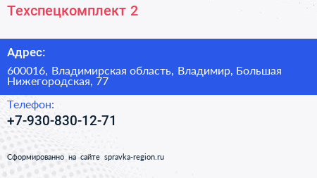 Техспецкомплект-2 по адресу 600016, Владимирская область, Владимир, Большая Нижегородская, 77 в дальнейшем Организация, размещена в следующих категориях: