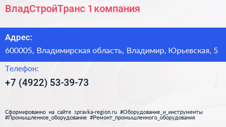 ВладСтройТранс-1, компания по адресу 600005, Владимирская область, Владимир, Юрьевская, 5 в дальнейшем Организация, размещена в следующих категориях: