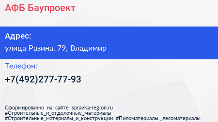 АФБ-Баупроект по адресу улица Разина, 79, Владимир в дальнейшем Организация, размещена в следующих категориях: