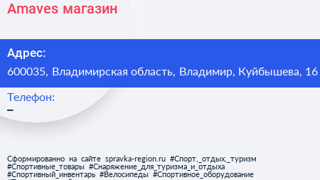 Amaves, магазин по адресу 600035, Владимирская область, Владимир, Куйбышева, 16 в дальнейшем Организация, размещена в следующих категориях: