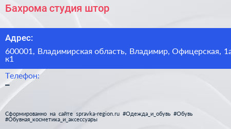 Бахрома, студия штор по адресу 600001, Владимирская область, Владимир, Офицерская, 1а к1 в дальнейшем Организация, размещена в следующих категориях: