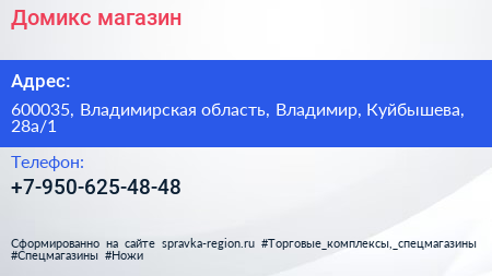 Домикс, магазин по адресу 600035, Владимирская область, Владимир, Куйбышева, 28а/1 в дальнейшем Организация, размещена в следующих категориях: