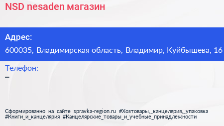 NSD nesaden, магазин по адресу 600035, Владимирская область, Владимир, Куйбышева, 16 в дальнейшем Организация, размещена в следующих категориях: