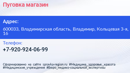 Пуговка, магазин по адресу 600033, Владимирская область, Владимир, Кольцевая 3-я, 16 в дальнейшем Организация, размещена в следующих категориях: