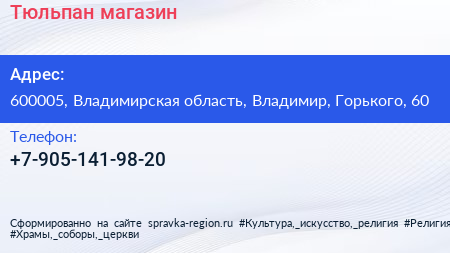 Тюльпан, магазин по адресу 600005, Владимирская область, Владимир, Горького, 60 в дальнейшем Организация, размещена в следующих категориях: