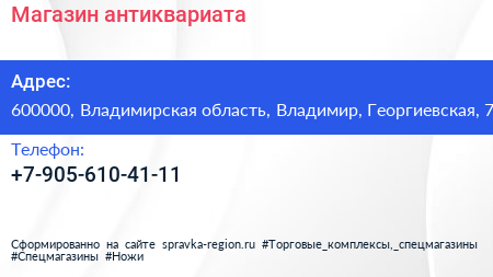 Магазин антиквариата по адресу 600000, Владимирская область, Владимир, Георгиевская, 7 в дальнейшем Организация, размещена в следующих категориях: