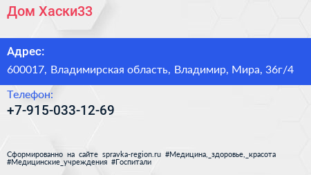 Дом Хаски33 по адресу 600017, Владимирская область, Владимир, Мира, 36г/4 в дальнейшем Организация, размещена в следующих категориях: