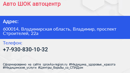 Авто. ШОК, автоцентр по адресу 600014, Владимирская область, Владимир, проспект Строителей, 22а в дальнейшем Организация, размещена в следующих категориях:
