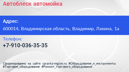 Автоблеск, автомойка по адресу 600014, Владимирская область, Владимир, Лакина, 1а в дальнейшем Организация, размещена в следующих категориях: